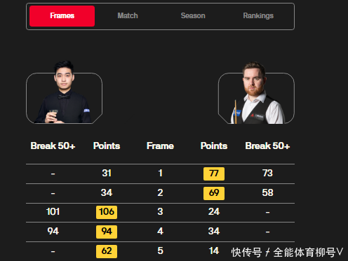 在0-2逾期的情况下连扳四局,以3-2逆转本年世锦赛亚军杰克-琼斯,距离小组冠军仅一步之遥。小组轮回赛临了一轮,斯佳辉还是以3-2驯顺敌手。